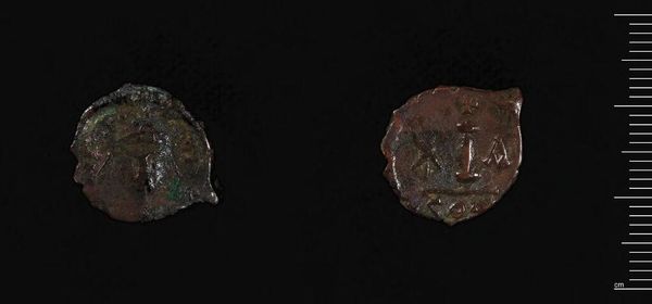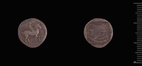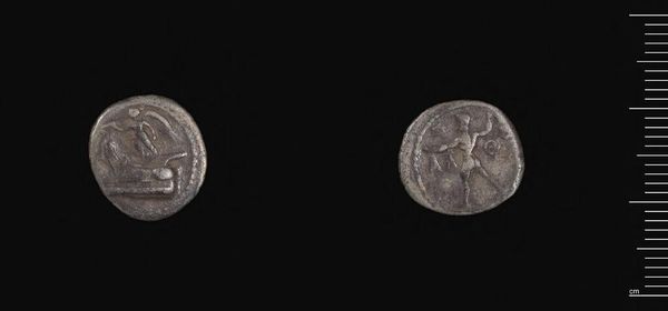 Curator: Look at the patina on this coin, a Coin of Justinian I, held here at the Harvard Art Museums. Such simple composition, two sides each bearing a solitary, powerful symbol. Editor: Yes, powerful in its symbolism, and a bit melancholy, wouldn't you agree? The wear suggests a rich history, stories whispered across centuries. Curator: Indeed. The one side shows the emperor in profile, the other, a bold "R," likely referencing Ravenna, a crucial mint location. Note the stark contrast in texture between the smooth fields and the raised design. Editor: I see this ‘R’ as more than just a reference. It’s the weight of empire, the resonating authority Justinian sought to project—a visual echo of Roman power, cleverly distilled into a single letter. Curator: Cleverly indeed, and economically. The composition balances legibility with artistic expression, a delicate dance between form and function. Editor: Seeing objects like this, touched by countless hands, always connects us to the sweep of human experience, doesn’t it? Curator: It does—and prompts us to appreciate the elegance of distilled visual language.