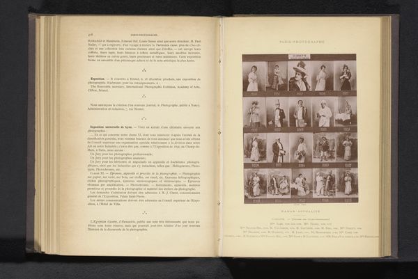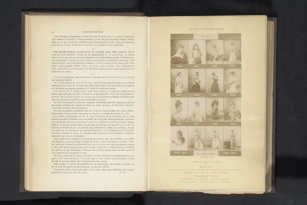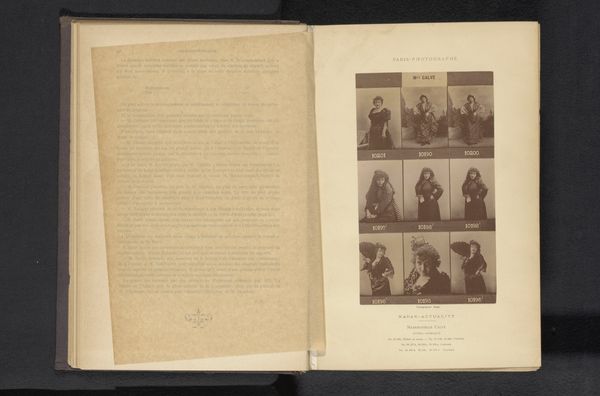 Editor: This is "Zestien portretten van balletdansers" - Sixteen Portraits of Ballet Dancers - dating from before 1893 by Nadar. It's a print made using collotype and it's located here at the Rijksmuseum. There's something about seeing them all grouped together that makes me wonder about the experience of ballet dancers at the time. What can you tell me about this image, looking at it from a historical context? Curator: It’s interesting to consider the public role of dancers, especially within the socio-political environment of late 19th-century Paris. Photography itself was relatively new, right? So how do you think it altered perceptions, compared to say, painted portraits? Editor: Well, it potentially made them more accessible to a wider audience? Less idealised, perhaps? Curator: Precisely. Photography played a crucial role in shaping public perception, democratizing imagery in a way. But think about who controlled those images, who profited? Were the dancers involved in these decisions, or were they passive subjects? Consider, too, how the male gaze likely influenced their representation, reflecting societal power structures of the time. It's also worth noting who *didn't* get photographed. Editor: That makes me wonder about representation and who had the privilege to be seen and remembered this way. Curator: Absolutely. Thinking about art’s role in preserving certain narratives while obscuring others encourages us to examine whose stories are told, and whose are left out. This work also underscores the relationship between the photographer, the photographed and their social world. Editor: This has really broadened my understanding of the picture! Thanks for your insights. Curator: And you’ve highlighted the photograph’s compelling immediacy. It shows that artworks are not neutral objects; they actively reflect their own era.