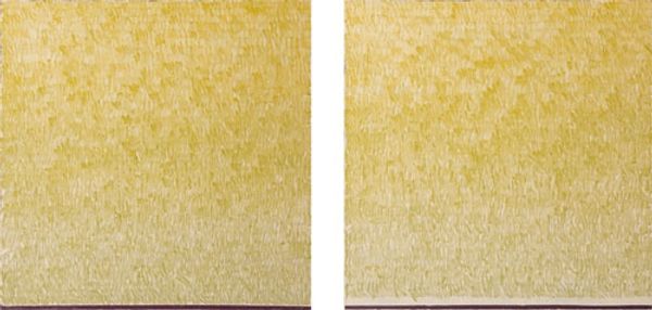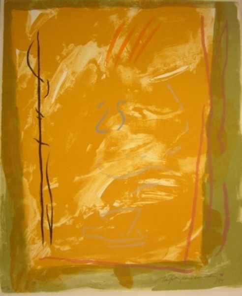 Editor: Here we have Gunther Forg's "Genter Serie" from 1998, made with acrylic paint. The large, blocky shapes of yellow and red are quite striking. The surface seems textured and brushed, yet overall it has a very cool, calm feel. How do you interpret this work, looking at its compositional elements? Curator: Immediately, the composition establishes a clear visual hierarchy. The central yellow rectangle, while perhaps not perfectly centered, commands attention by virtue of its size and its contrast against the flanking red vertical bars. The surface texture interests me, offering a tactile, handmade quality that tempers the rigid geometry. Do you see how this interplay of formal elements creates a dynamic tension? Editor: Yes, I see what you mean. The visible brushstrokes disrupt the pure minimalist aesthetic. The texture also creates depth; it's not just a flat plane of color. Curator: Precisely. Consider how Forg employs color. The yellow and red aren't blended but presented in distinct zones. It would be fruitful to analyze this through the lens of semiotics: what meaning arises from their juxtaposition, beyond just pure chromatic value? Editor: I hadn’t considered a semiotic approach. I was just enjoying the colours. So you’re saying the colors create a conversation? Curator: A discourse, if you will. Formalism grants that colors themselves possess inherent, culturally-imbued meanings that speak across linguistic and social divides, thereby triggering interpretation. In short, it isn't just a pretty painting but a calculated construction intended to elicit response via visual architecture. Editor: I see. Thinking about it structurally, it isn't just the colors themselves but also the placement of them. Thank you, that’s definitely expanded how I look at abstract art. Curator: My pleasure. Looking closely unlocks latent structures embedded within, offering fertile ground for contemplation.