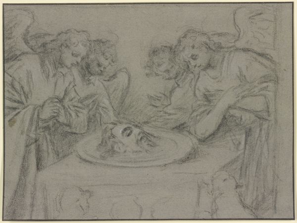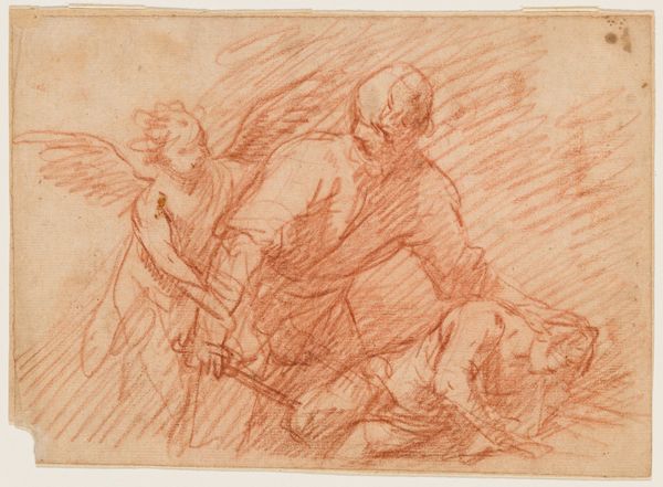 Antonio Bellucci created this drawing, Susanna and the old men, using red chalk. Bellucci was an Italian painter of the late Baroque period, who spent much of his career working in Northern Europe. The drawing depicts the biblical story of Susanna, a woman spied on while bathing by two elders. It illustrates a canonical scene in Western art history, often interpreted as a tale of voyeurism and female vulnerability. Bellucci renders Susanna's distress with a sensitive hand; the drawing focuses less on explicit detail and more on the emotional tension of the moment. Bellucci’s Susanna is presented as a figure caught in a moment of violation. How does his work contribute to, or challenge, the traditional portrayals of women in art? Consider the power dynamics at play in this narrative and how it reflects the societal norms of the time. The sketch captures a charged moment, one that remains relevant in discussions about privacy, consent, and representation.
