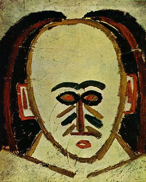 Curator: Before us is a self-portrait by Pablo Picasso, executed in 1906 using oil paint. Editor: My immediate reaction is to its stark simplicity. The palette is muted, almost monochromatic, giving it a rather raw, vulnerable feel. Curator: That's interesting. Historically, 1906 marks a significant turning point in Picasso's career, falling within his so-called "Rose Period" but also anticipating his engagement with Iberian sculpture and, soon after, the development of Cubism. Editor: I see a directness that speaks volumes, even though it lacks flamboyant colours or elaborate details. Look at the unflinching gaze. It almost feels like he's challenging the viewer, confronting them. Given the historical context, it makes me consider masculinity and how Picasso performed that in the early 20th Century, especially as a Spanish expatriate in Paris. Was this image deliberately austere, meant to be read as a declaration of identity? Curator: Precisely. The pared-down aesthetic could be interpreted as a rejection of prevailing academic styles, a move toward a more 'primitive' mode of representation. And let's not forget, there's a lot of debate surrounding cultural appropriation at the time in relation to Picasso’s Primitivism. Editor: The muted tones remind me of clay or earth, tying it to something ancient. Do you think the monochromatic color selection was to emphasize this reference, perhaps tying his artistic identity to his historical one? It's fascinating how the portrait doesn’t just represent a likeness, but an assertion of artistic identity and heritage during a transitional era for him. Curator: Absolutely, it’s like he’s grounding himself, using his heritage as a foundation for the revolutionary path he's about to take. Considering art’s role within increasingly global contexts, a reading that moves through gender, ethnicity and nationhood feels absolutely correct. Editor: It’s a complex work, filled with these types of tensions, made even more interesting through his unique artistic journey. Curator: Indeed, the painting prompts contemplation regarding how personal and collective identity intersects within the realm of artistic expression and evolution.