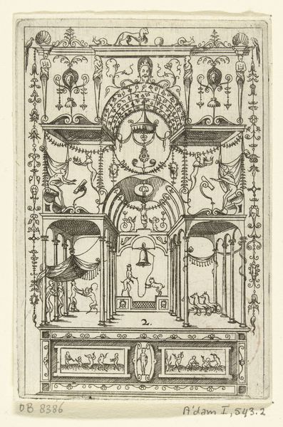 Curator: This is an intriguing engraving, titled "Offerings for the Tabernacle" by an anonymous artist. The linear quality suggests a printmaking technique, perhaps woodcut or etching. The stark black and white creates a powerful contrast. Editor: It feels rather austere, doesn't it? A bit cold even. The composition is very formal, with a clear separation between the objects. It almost reads like an inventory of ritual implements. Curator: Indeed. The emphasis seems to be on the functionality and arrangement of these objects within the sacred space. Consider the labor involved in creating each item. The specific materials used for offerings and the meticulous arrangement would have been crucial. Editor: And the context is so important. Without knowing the exact cultural or religious background, it's hard to fully grasp the significance of each item and their placement. What kind of societal structure dictated these rituals? Curator: It prompts us to consider the socio-political function of religious spaces and how they reflected power structures. Editor: Precisely! The image serves as a reminder of the complex relationship between art, ritual, and the exercise of influence. Curator: Absolutely. It also prompts us to think about the role of these objects as active agents in constructing and maintaining a specific worldview. Editor: A compelling visual document, revealing layers of meaning embedded in its historical and material context.