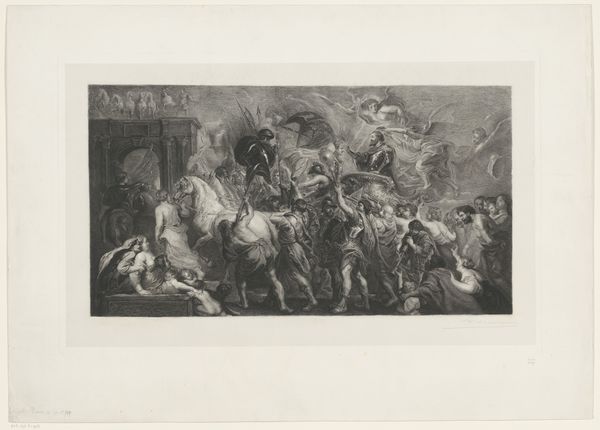 This etching of 'The Magnanimity of Alexander the Great' was created by William Unger. Unger, born in Hanover, Germany, was a prominent figure in the world of printmaking, celebrated for his technical skill and historical subject matter. The image depicts Alexander's generous act of sparing the family of the defeated Persian King Darius. It is a meditation on power, mercy, and the dynamics between conqueror and conquered. There's a tension at play, with the opulence and submission of the Persian court juxtaposed with the stoic stance of Alexander's soldiers. Unger was known for his ability to evoke emotion through precise lines and subtle shading. His work invites us to think about the ethical dimensions of leadership and the complexities of cultural exchange in times of conflict. Through Unger's skilled hand, we are prompted to reflect on the enduring relevance of history and its impact on our understanding of contemporary issues of power and justice.