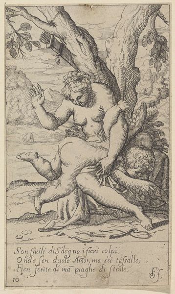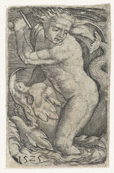 Heinrich Aldegrever made this small engraving, "Eva reikt Adam de Appel onder de boom met de slang", sometime in the first half of the 16th century. It depicts the moment in the Garden of Eden when Eve offers Adam the forbidden fruit. Produced in Germany, the print reflects the religious and social anxieties of the Reformation. Aldegrever was a printmaker in the circle of the "Little Masters," artists who embraced the small scale and precise detail of engraving. His Adam and Eve is more carnal than earlier Northern Renaissance versions. They are surrounded by a variety of animals, including a snake with a human head which symbolizes temptation. The act of offering the apple represents a challenge to divine authority. To understand Aldegrever's print more fully, we can consult theological texts of the period, records of social customs, and the biographies of artists within his circle. These help to contextualize the artwork and to understand the power of art to challenge existing social norms.