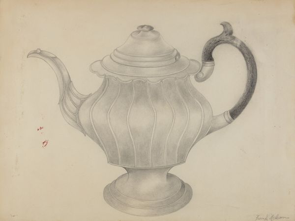 Here is a drawing of a "Silver Teapot," made with graphite, we think, by an anonymous artist. The thing that gets me about this piece is the artist's dedication to capturing the play of light on metal. It's all about tone. There's an incredible range of grays, from almost black to barely-there. It's like they're chasing the highlights, trying to nail down that fleeting moment when the light catches the curve of the spout. Look closely at the handle. The way the artist renders the light and shadow, it almost feels like you could reach out and touch it. You can practically feel the coolness of the metal, the smooth curve fitting into your palm. It reminds me a bit of Morandi, that quiet focus on everyday objects, finding the sublime in the mundane. It’s a reminder that art is as much about seeing as it is about doing.