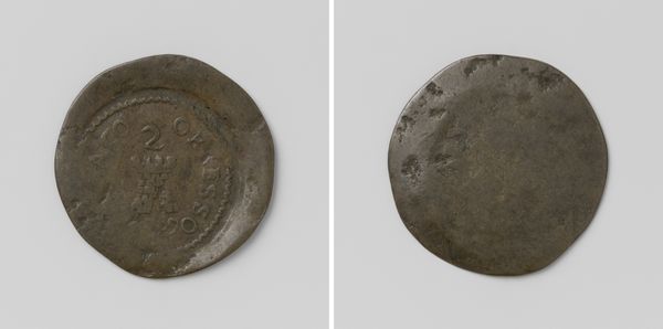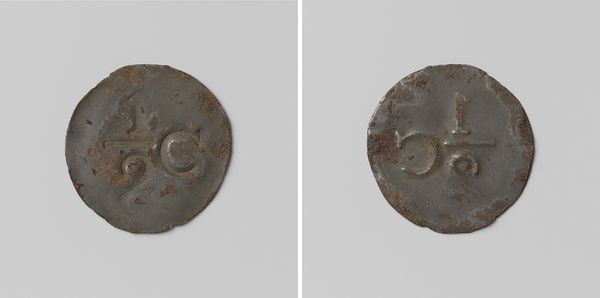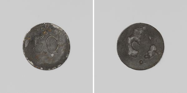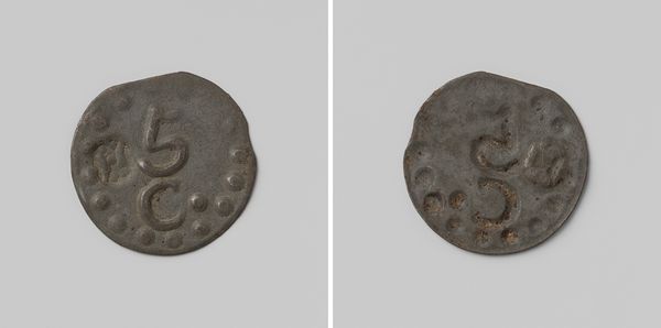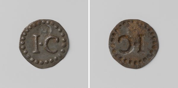 Editor: This small, somewhat crude metal coin is titled "Strafgevangenis Ommerschans, huismunt geslagen op last van de Maatschappij van Weldadigheid ter waarde van tien cent" and it comes to us from before 1830. It is currently located at the Rijksmuseum. What strikes me is its blunt, unrefined appearance, which contrasts sharply with modern currency. What can you tell me about this object? Curator: This coin isn't merely currency; it's a symbol of social control and the power dynamics inherent within systems of incarceration. The Maatschappij van Weldadigheid, a Dutch philanthropic organization, sought to "rehabilitate" the poor through forced labor in agricultural colonies, one of which was Ommerschans, a prison. So, in essence, the organization’s effort wasn’t an act of simple altruism, but of control that disguised itself as help. How might we understand this co-option of good intentions and this concept of reform? Editor: That is very interesting. The creation and circulation of such coins represents an alternate economy, like play money used exclusively in a specific context, as if its real purpose was isolating this group of people. What could we say about that? Curator: Exactly. It enforced a closed system. Imagine being paid in a currency that only has value within the prison walls, further cementing dependence on the very system that oppresses. The lack of refinement you noted earlier only emphasizes the dehumanization embedded in this system. In what ways can you perceive this reality reflected by this house coin and the Maatschappij van Weldadigheid at large? Editor: That definitely highlights the insidious nature of power. I didn’t realize how much this coin could reveal about larger societal structures and the complex relationship between philanthropy, social control, and capitalism. Thank you. Curator: The story of this coin reminds us to always question the motivations and power dynamics behind seemingly benevolent interventions. This piece compels us to unpack what it really means to promote societal wellbeing and consider different strategies and viewpoints.