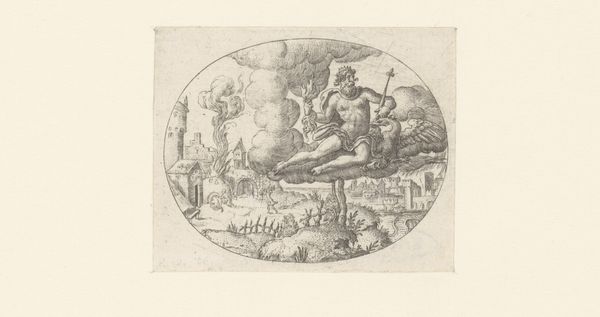 Editor: Here we have "Juni," an engraving created by Etienne Delaune in 1568, currently residing at the Rijksmuseum. It’s rendered in a fascinating old engraving style. The pastoral scene feels so idyllic, almost like a little vignette. What strikes you most about it? Curator: The most powerful aspect for me is the engraving’s symbolic density. See how the composition echoes classical prototypes of idealized rural life, a vision of harmony with nature? Yet, observe the ox in the sky – it references the Zodiac sign Taurus, connecting daily life to a wider cosmos and older mythological narratives of seasonal cycles. How does that link the people and the livestock depicted? Editor: It’s fascinating to see that link to astrology and the cycles of nature, but also… they're sheering sheep in the fields. That’s probably practical work and the work-a-day world right? Curator: Exactly! Delaune captures both the earthly work and the cosmic implications. The shearing itself has multiple symbolic valences; in the Bible, sheep have links to ideas around sacrifice. Do you notice how this practical work can also tie to seasonal traditions and community too? Editor: I do see it now; it all fits together and feels very Northern Renaissance! Curator: Precisely! And even this medium, engraving, carries cultural weight. The precision of the lines, the replicability… it speaks to the values of clarity and widespread dissemination of knowledge which are key elements within Renaissance humanism. These are ways for symbols and ideas to travel, both literally, with these prints, and metaphorically, through our minds and collective memories. Editor: So, the piece invites us to see beyond the immediate depiction of a pastoral scene. The visual cues build these deeper layers, these references to larger symbolic frameworks... I appreciate that much more now. Curator: And that appreciation allows the work to speak anew, connecting its era to our own ongoing engagement with symbols, imagery and shared meaning.