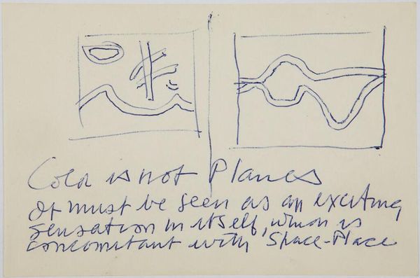 Curator: This work is a conceptual sketch by Stuart Davis, likely from the mid-20th century. He titled it, "Art Theory Text with Maximum Ratio Differential Diagrams." Editor: It's so...diagrammatic! Like a blueprint for an idea. I feel a sense of playful experimentation, but also the rigidness of geometry, boxed in. Curator: Davis was fascinated by the relationship between abstract forms and language. You see how the text becomes part of the composition itself? Editor: Yeah, like the words are shapes, almost as important as the lines and boxes. But what does it all *mean*? It feels like the beginning of something...a concept itching to be born. Curator: Davis sought to capture the energy of modern urban life. Perhaps this was his way of mapping that frenetic energy through diagrams and text. Editor: I love that! It's like a secret code only the art can decipher. It is a cool paradox, isn't it? A little chaotic, a little organized. Curator: Indeed, an intriguing glimpse into Davis's artistic process and intellectual curiosity. Editor: Absolutely. Makes me want to grab a pen and start diagramming my own thoughts.