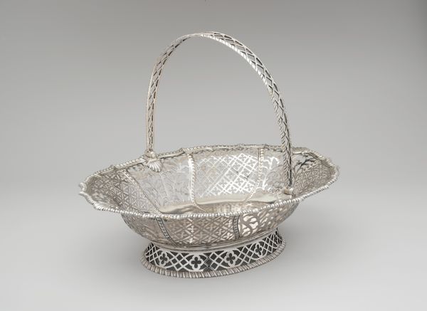 This boat-shaped hanging flower basket was created by Tanabe Chikuunsai. It's an intricate work in woven bamboo, and the reddish-brown patina of the bamboo gives the basket a warmth that's immediately appealing. The structure is defined by strong geometric lines, softened by the organic texture of the woven material. The piece plays with the traditional form of a flower basket, abstracting it into something almost architectural. Notice how the boat-like shape is not just decorative, but also structural, influencing how the space within the basket is defined. Chikuunsai uses the inherent properties of bamboo to challenge our expectations, turning a functional object into a study of form and texture. Ultimately, it's the dialogue between the geometric and the organic that makes this basket so compelling. The tension between the regular patterns of the weave and the irregularities of the natural material underscores the artifice inherent in all crafted objects, challenging us to reconsider the boundaries between nature and culture.