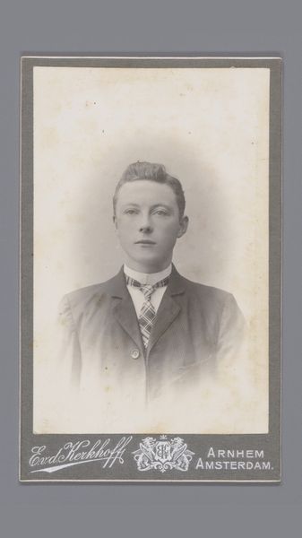 This photograph of an unknown man was taken by Willem Gerhardus Kuijer in Amsterdam, likely in the late 19th century. Small photographs like this were very popular at the time as affordable keepsakes, often collected in albums or exchanged amongst friends and family. Looking at the image, one can't help but wonder about the social context that made such a portrait possible. The rise of photography in the 19th century democratized portraiture, making it accessible to a wider segment of society than ever before. While painted portraits were once reserved for the wealthy elite, photographic portraits allowed people from various social classes to document their likeness and preserve their image for posterity. The institutional history of photography is also relevant here. Kuijer operated his studio from Westermarkt 11 in Amsterdam, becoming part of a network of commercial photographers who catered to the growing demand for portraiture. These studios played a crucial role in shaping visual culture. By researching archives, newspapers, and studio records, we can better understand the social and cultural significance of these seemingly simple images.