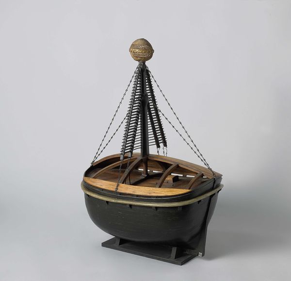 This is a model of the bow of an 84-Gun Ship of the Line created by Rijkswerf Vlissingen. The model ship's structure is open, revealing the meticulous grid work of its skeletal frame. Light filters through the lattice, casting shadows that play across the warm wood. The ship is stripped of its outer layers, inviting us to consider its underlying structure. This piece embodies the spirit of the Enlightenment's analytical approach to understanding complex systems. By exposing the internal framework, the model shifts our focus from the ship’s function as a war machine to its anatomy as a feat of engineering. Each line and joint becomes a sign, pointing to the broader network of naval power, trade, and technological advancement. The ship's exposed frame also destabilizes our conventional understanding by making visible what is often concealed. This invites a dialogue about transparency, power, and the structures that shape our world.