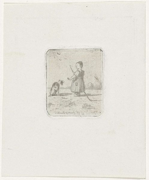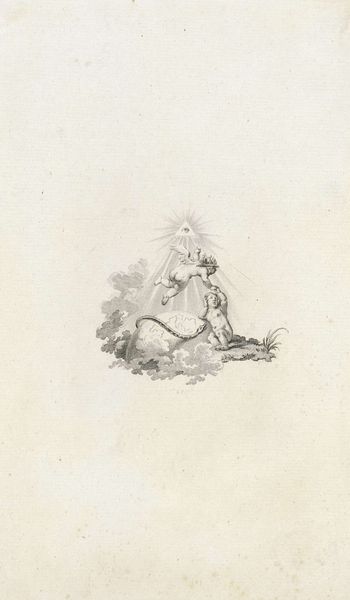 This stipple engraving, titled "Oude man zit bij open graf," meaning "Old man sits by open grave," was created by Johannes Christiaan Bendorp. Reflecting on mortality, the piece speaks to the era’s fascination with the sublime and the transient nature of life. The solemn figure, possibly a hermit, sits contemplatively. His posture and the barren landscape underscore themes of solitude and introspection. The open grave and the tools nearby introduce a stark reminder of death's inevitability. Within the historical context of late 18th and early 19th century Europe, marked by wars and revolutions, this artwork serves as a reflection on human vulnerability and the search for meaning amidst chaos. Bendorp invites us to confront our own existential questions. How do we reconcile with the awareness of our mortality? What solace can be found in contemplation and acceptance?