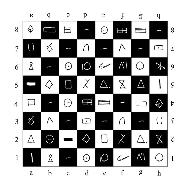Valerii Lamakh created "The Fourth 'Book of Schemes'" with ink on paper. Here, a series of symbols, each encased in a square, are arranged in a circular formation, immediately drawing our eyes to the void at the center. The stark contrast between the black symbols and the white background emphasizes their geometric forms. Lamakh uses a limited vocabulary of lines to construct each glyph, exploring variations within a rigid framework. The composition suggests a visual language, perhaps an attempt to codify or decipher meaning through abstract shapes. This recalls structuralist theories, where meaning is derived not from the inherent qualities of an object, but from its relationship to other objects within a system. The artwork challenges our understanding of language and representation. By presenting these symbols without a clear key, Lamakh destabilizes the conventional function of signs. This piece prompts us to consider how meaning is constructed through form and context. Is it a failed attempt to communicate or an invitation to project our own interpretations onto these enigmatic forms?