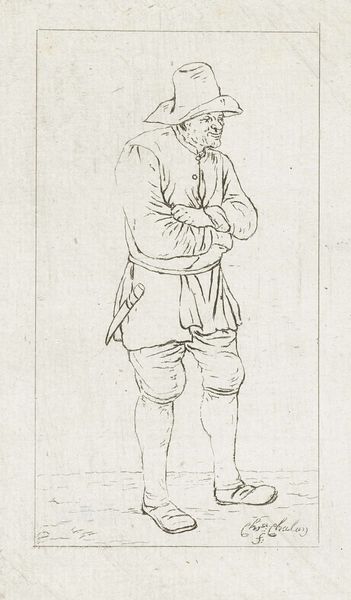 Henk Henriët made this pencil drawing of Grandgousier in 1939. The artist is using graphite, one of the most basic and humble materials available. Here, the artist uses the simplicity of pencil to give the character of Grandgousier, a giant from a Renaissance novel, a sense of immediacy and raw emotion. The varying degrees of shading create depth, emphasizing the giant’s grotesque features and expressive stance, rooted in the history of caricature. Henriët’s choice to use pencil on paper enhances the artwork’s accessibility, blurring the boundaries between formal art and everyday drawing. The quickness of the medium allows for an almost journalistic capture of the figure’s essence. By highlighting these qualities, we understand how the artist turns a simple sketch into a powerful representation of character. This approach challenges how we think about artistic value, reminding us that profound expression can be found in the most unassuming materials.