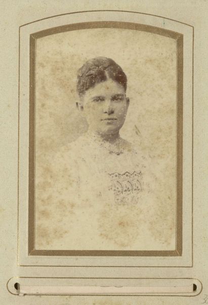 Editor: This is "Portrait of a Girl with a Book" by Albert Greiner, made sometime between 1874 and 1887. It's a photograph, a medium which was still fairly new at the time. There's a quiet thoughtfulness in her gaze that I find really captivating. What do you see in this piece? Curator: I'm struck by the tension between representation and agency inherent in this photograph. On one level, it's a portrait of a young woman, likely from a privileged background given her attire and the presence of the book, a signifier of education and leisure. But it also presents a crucial intervention on conventional roles ascribed to young women at this historical juncture. Editor: Intervention? How so? Curator: By presenting the young woman as intellectual—with the book serving as a potent symbol—the photograph offers a subtle resistance against prevailing notions of feminine domesticity and submission. The book suggests an inner life, an engagement with ideas that transcends mere aesthetic objectification. Is this staged, an aspiration? The truth likely lies somewhere in between. Editor: So it's about subverting expectations, but in a quiet, almost subversive way? Curator: Precisely! It's crucial to contextualize photography in the late 19th century to highlight its unique function in image dissemination, contributing both to canonizing and challenging social stereotypes. Editor: I never thought about it like that before, that the presence of the book challenges stereotypical representation rather than just signaling status. Thank you! Curator: It goes to show how even seemingly straightforward portraits can contain layers of complexity when viewed through the lens of gender and class dynamics of the time.