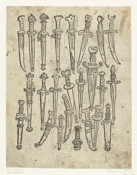 Reinier Vinkeles created this print titled "Bones and Mummified Ibises." The composition arranges skeletal elements and mummified remains of ibises with a clinical precision. Executed in a monochrome palette, the careful delineation of form and texture lends a stark, anatomical quality to the work, setting a tone of scientific inquiry mixed with reverence. The upper portion of the print features avian bones, meticulously laid out to reveal their structure, while the lower section showcases a series of mummified ibises, each wrapped and preserved. The artist contrasts the fragility of bone with the apparent permanence of the mummified forms. What does it mean to confront a semiotic system through something as seemingly immutable as the structures of life and death? This work invites reflection on the act of preservation, and how the arrangement and display of objects challenge fixed meanings, engaging with new ways of thinking about perception and representation. This interplay between the ephemeral and the enduring echoes broader artistic and philosophical concerns about time, knowledge, and the human impulse to categorize and comprehend.