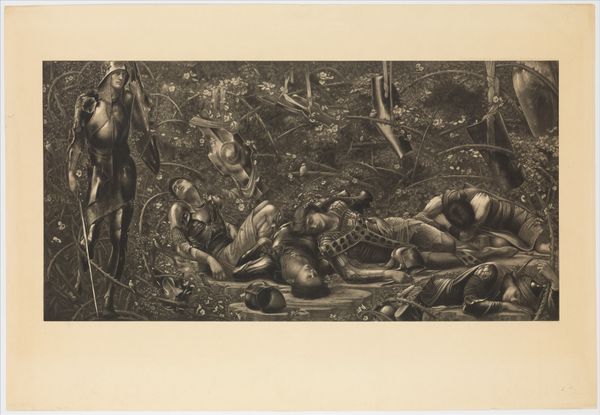 Editor: Here we have "De visschers" or "The Fishers," a woodcut print by Johannes Frederik Engelbert ten Klooster, created in 1921. There’s such a dramatic contrast between light and shadow. I'm curious, how do you interpret this work? Curator: What strikes me is how Ten Klooster uses the Expressionist style to portray the struggle of these fishermen, doesn’t it? The distorted figures, the violent waves – they speak to a historical reality, a period of immense social and economic upheaval following the First World War. Editor: Yes, that makes sense. The figures do seem to be wrestling not just with the sea, but with something more. The tension in their bodies. The near-absence of facial features. Curator: Exactly. Consider the position of the working class at this time, caught in the throes of industrial change. These "fishers" can be viewed as symbolic figures embodying a collective struggle against both natural and systemic forces. The Expressionist aesthetic heightens this, doesn't it? Highlighting alienation and the raw realities of human experience. What does the use of woodcut as a medium suggest to you in this context? Editor: Woodcut seems fitting, actually. Its rough, textured lines underscore the harshness of the fishermen’s lives, and the simplification feels symbolic of the struggles faced by laborers across Europe at that time. It brings attention to the materials used in its creation, which are grounded, like the working class. Curator: I completely agree. This is not just a depiction of labor; it’s a commentary on the human condition during a time of incredible social and political volatility, right? And, seeing it through that lens helps us connect it to relevant themes about identity, gender, and politics. Editor: Definitely. I see it now. It’s not just about fishermen and the sea, it’s a reflection of broader societal struggles and realities, which can give art more intention and a deeper connection with audiences. Thank you for helping me understand this artwork on a more intersectional and historical level!