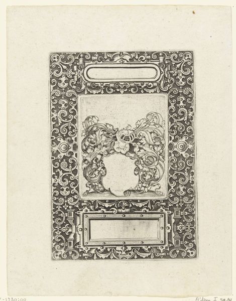 This is an anonymous print titled "Cartouche met hoofden, cherubijnen en maskers" housed here at the Rijksmuseum. The cartouche, teeming with cherubs, frames an interior scene bustling with figures; we could imagine this image circulating in the 17th or 18th century. Prints like these were powerful tools in early modern Europe. They weren’t simply decorative, they were vital for the dissemination of ideas. Consider the role of class here. The elaborate frame, adorned with cherubs and masks, speaks to a wealthy patronage, while the scene within hints at social gatherings and cultural exchanges among the elite. How did such images shape perceptions of power and privilege? Did they reinforce social hierarchies? Think about the anonymous nature of the artist, and how this piece invites us to reflect on the silent narratives and social commentaries embedded in art.