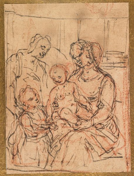 Luca Cambiaso made this pen and brown ink drawing, The Holy Family with the Infant Baptist, sometime in the 16th century. This piece exemplifies the period’s fascination with classical ideals, filtered through a Christian lens. Consider how the figures are arranged, almost like a sculptural relief, a common trope of Renaissance art. The cultural context of Renaissance Italy, particularly its religious patronage system, shaped the creation of such works. Institutions like the Catholic Church were central to artistic production, commissioning art to reinforce religious doctrine and social values. Cambiaso's artistic choices, such as the carefully rendered figures and the emphasis on familial piety, align with the Church's conservative agenda. Yet, the raw, unfinished quality of the sketch hints at a tension between artistic expression and institutional expectation. Understanding art requires delving into the social, religious, and political forces that shaped its creation. Resources such as period documents and institutional records can shed light on the complex interplay between art and society.