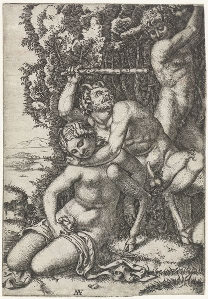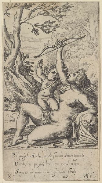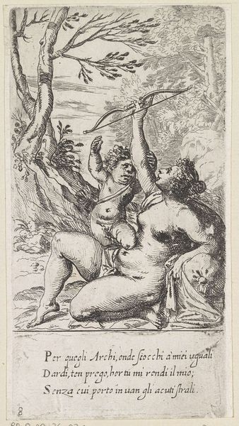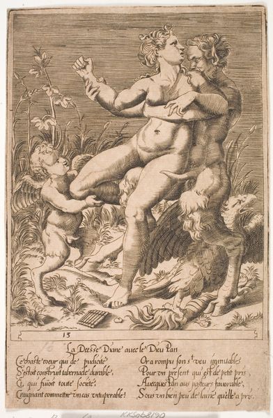 Agostino Carracci etched this print, now held in the Rijksmuseum, depicting a nymph, a putto, and a young satyr. The satyr, a creature of the wild, part man and part goat, embodies primal instincts. Here, his youthful depiction alongside a playful putto—a symbol of innocent love—creates a dynamic tension. The image's roots stretch back to classical antiquity, where satyrs were associated with Dionysus, the god of wine and ecstasy. Consider how these figures reappear in Renaissance art, often softened, reflecting a renewed interest in classical themes. Notice the nymph’s posture, reminiscent of Venus figures, a pose that carries its own weight of cultural memory, echoing through centuries of art. Perhaps the emotional pull of this print lies in the eternal dance between innocence and wildness, tamed and untamed. It's a reminder that these archetypes continue to shape our artistic expressions, evolving yet ever-present in the collective consciousness.