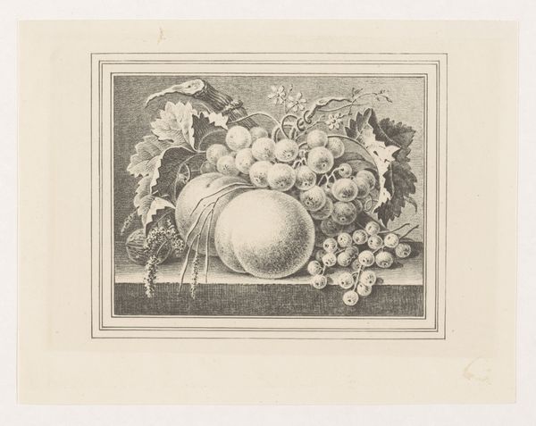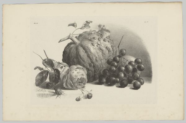 Anton Weiss made this still life, Pompoen, bessen, druiven en perziken, with pen in gray in the first half of the 19th century. During this period, many artists focused on capturing the beauty and abundance of nature. This work reflects the cultural values of the time, where the representation of food and natural elements often symbolized wealth, prosperity and the pleasures of life. The arrangement of the fruits, with their varied textures and shapes, invites a sensory experience. It makes us consider the role of still life in reflecting the social and economic contexts of its time. Weiss’s choice of subject and medium speaks to a desire to capture and celebrate the everyday world around him. Does this artwork reflect a traditional representation of still life, or does it offer a new way of seeing the world?