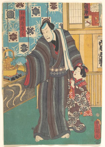 This print was made by Utagawa Kunisada, a leading designer of ukiyo-e woodblock prints in 19th century Japan. Kunisada was a key figure in the artistic world of Edo-period Japan, a time of peace and economic growth that saw a flourishing of urban culture. Prints like this one were made and consumed by a wide audience, effectively democratizing art. Kunisada here presents us with a scene full of cultural references, blending the real and the theatrical. The male figure's swords suggest a samurai, while the woman's elaborate kimono and coiffure indicate her high social status. The setting, with its moonlit landscape and carefully arranged interior, speaks to a cultivated aesthetic sensibility. As historians, we might look to theater records, fashion trends, and even popular literature of the time to better understand this image. Ukiyo-e prints offer us a window into the social life and cultural values of a vibrant historical moment.