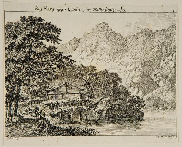 Editor: This is Johann Heinrich Meyer’s "Hermitage of S. Nicolaus von Flüe, Ranst." It's a finely detailed print. I’m struck by how the hermitage seems both isolated and integrated into the landscape. What can you tell me about its context? Curator: Well, consider the period. In the 18th century, the depiction of religious sites often served a dual purpose. It was devotional, certainly, but also a means of asserting cultural or even political identity. How might this image of a hermit’s dwelling function within the context of Swiss cantons? Editor: Hmm, maybe it's meant to evoke a sense of local pride, emphasizing a connection to the land and a distinct religious tradition separate from larger powers? Curator: Precisely. The print could have circulated among local communities, reinforcing their sense of belonging and historical continuity. I wonder, what impact did works such as this have on shaping the identity and heritage of the people living in the region? Editor: It makes you think about how art can actively build a sense of community, not just reflect it. Curator: Indeed. A simple image, yet laden with layers of social and cultural meaning.