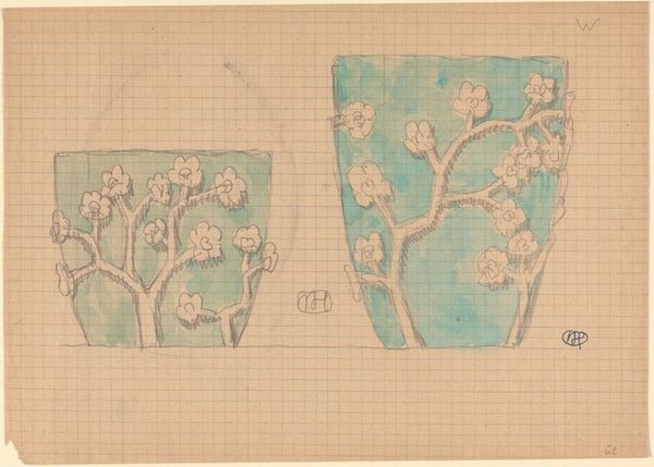 Curator: This small drawing, only about 15 by 19 centimeters, is titled *Floral Design* and it’s by Denman Waldo Ross. We don’t have a date for it. Editor: It feels incredibly fragile, almost like a breath on paper. The two floral forms, they're so lightly sketched, nearly disappearing into the page. Curator: Ross was quite interested in design theory, and his use of pencil here really emphasizes line and form. He explored color theory, too—he even invented a color harmony system! Editor: You know, looking at the way these blossoms are rendered, there's a feeling of something mass-produced—like a stamp or stencil. Were these designs intended for textiles, perhaps? Curator: Possibly. He was a collector of textiles, and influenced by the Arts and Crafts movement, so I think the idea of making art accessible was definitely on his mind. Editor: And that tension, between the handmade mark and the suggestion of mass production, makes this modest drawing quite compelling. Curator: Absolutely. It really invites us to think about the creative process, doesn't it?