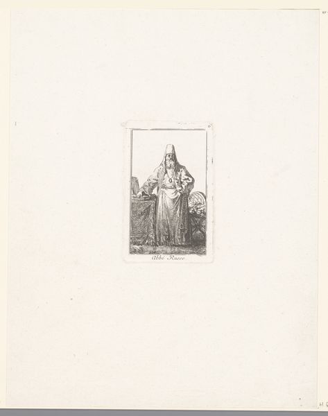 Curator: Here we have Friedrich August Ludy’s “Saint Christina.” Look at how the lines define her form. The stark monochrome creates a serene, almost ethereal quality. Editor: It feels like we are looking at craft and labor. What kind of paper and ink was used? I wonder what kind of press printed it. Curator: The composition clearly adheres to neoclassical ideals: the figure is centered, and the background is minimal, reinforcing the primacy of the subject. Editor: But it isn't perfect. There's something humble about the labor implied in the piece, like folk art, despite the high subject matter. Curator: Interesting perspective. Regardless, the artist has successfully captured the saint's stoicism through meticulous detail. Editor: It's a testament to the process of its making, inviting us to appreciate the artistic labor. Curator: Indeed, a striking convergence of form and content. Editor: It shows us the meeting point between art, craft, and faith.
