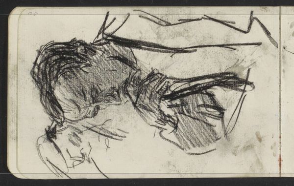 This sketch, Akt, was made by Béla Czóbel with graphite on paper. Czóbel uses the stark contrast and smudging capabilities of graphite to create a sense of depth and movement. The texture of the paper adds a tactile dimension to the work, inviting the viewer to imagine the artist’s hand moving across the surface. The rapid, expressive strokes suggest a moment captured in time, an impression quickly recorded. This immediate quality contrasts with the more deliberate, time-consuming processes often associated with traditional art forms. By embracing the simplicity of graphite and paper, Czóbel challenges the hierarchy between 'high' art and the more humble medium of drawing. The labor involved is evident in the dense network of lines, reflecting the artist’s direct engagement with the materials. Consider how the choice of materials and the process of creation contribute to the overall impact of the artwork.