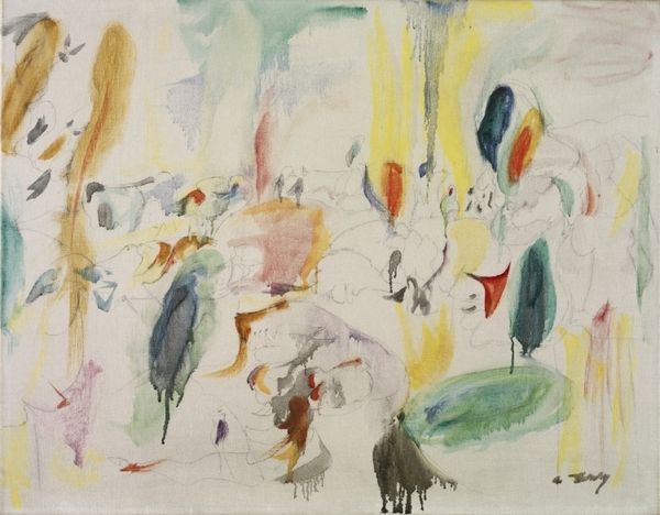 Cy Twombly made this "School of Athens" with paint and maybe some crayon, it looks like he was thinking about history, but also, totally in the moment. The surface has all these scrawls and marks, like he's scratching into time itself. See how the colors are muted, with these pops of red and yellow? It's like a whisper of something ancient, but done with a totally modern, throw-away gesture. Look at that little brown mark, a tiny horse shape that looks like it was dashed off in a second. It's almost nothing, but it gives the whole thing a sense of movement. Twombly reminds me a little of Joan Mitchell, because they both make painting feel like a kind of messy, beautiful conversation. Art is like that, just one big, ongoing scribble across time.