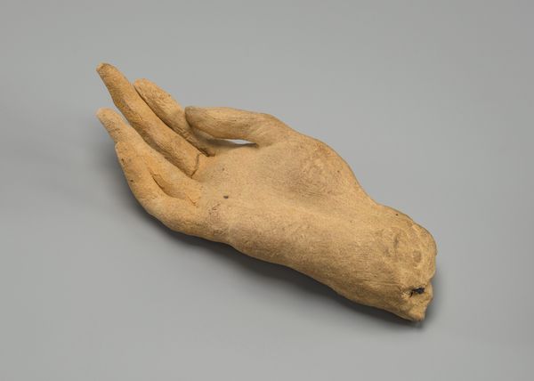 Curator: I'm immediately struck by how ancient this looks; it’s both fragile and imposing. Editor: It does have that effect. We're looking at a "Drum" crafted sometime in the 19th century by the Hopi Tribe or a group within the Shoshonean family. It's currently held in the collection of the Metropolitan Museum of Art. Curator: A drum made with collage and textile, among the several mediums that incorporate the construction materials of the work. The colors seem muted, organic. I wonder what it sounded like, if it could still sing. Editor: The making would involve a sourcing and curing of wood, stretching animal hide, weaving, and securing the construction via meticulous labor, reflecting practical usage needs as much as ceremonial importance. Curator: Thinking about the materials used brings a somber tone to my mind: the sacrifice of those raw materials… the trees felled, the animals given. Does this shift your understanding about its use or what is represented? Editor: Well, that shift underscores a complex exchange. It is both labor, a communal creation, and the deployment of natural resources, hinting at a profound interdependence. This wasn’t just a craft it represents culture itself. Curator: I find myself wondering about its resonance in those ceremonies. Can you almost feel the rhythmic vibrations just looking at it, envision the dances, the invocations carried within its beat? Editor: I would ask if the material, shaped through communal effort, elevates utility to ritual—redefining art through participation. What you’re seeing isn’t just history on display; it's an active testament to continuity, resilience. Curator: Considering the meticulous assemblage, perhaps a testament not just to its functional purpose but as a potent symbol. I mean what are we willing to give our entire being and skill, in order to manifest our connection with spirit, a soul perhaps. Editor: To me, understanding the indigenous material base—how limited resources shape both aesthetic choices and cultural meaning, as well as challenging our ideas around labor practices helps to reclaim power. It becomes a political and ecological statement against any Western-dominated artistic legacy. Curator: And sometimes a work speaks through its presence, a raw presence, demanding not analysis, but empathy, feeling beyond thought, seeing beyond mere image. Editor: True. Its tangible rawness roots its stories within specific territories of tradition; offering both resistance and resourcefulness when you begin to connect the lineage to what its origins are.