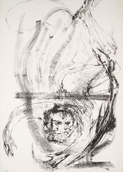 This is 'Inferno Series - E' by Rico Lebrun, made using etching techniques. It’s an intaglio printmaking process, which means the image is incised into a metal plate using acid. The plate is then inked, and the surface wiped clean, leaving ink only in the etched lines. Finally, dampened paper is pressed against the plate, transferring the image. The process allows for highly detailed work, as you can see in the figures, and the depth of tone achieved by the varying pressure applied during printing. The stark contrast between light and shadow creates a dramatic effect, amplifying the emotional intensity of the scene. The linear quality of the etching lends itself well to capturing movement and texture. The physical act of etching, with its potential for both precision and accident, mirrors the themes of torment and suffering depicted in the Inferno series. By focusing on process, we can appreciate how the medium itself contributes to the work's overall impact.