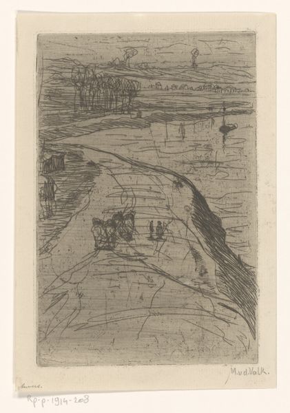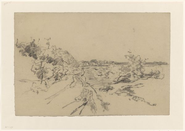 Editor: This graphite drawing by John Henry Twachtman, titled "Ploughing," gives me such a somber, earthy feeling. The lines are so raw. What symbols do you see emerging from this work? Curator: The plough, of course, represents cultivation and the taming of nature. But consider the single, desolate tree in the background. Does it represent hope or resilience? Editor: Or perhaps the loneliness of man’s impact on the landscape? Curator: Precisely. Twachtman invites us to reflect on our relationship with the earth, both its nurturing and destructive potential. Editor: That's a perspective I hadn't considered. It makes me see the drawing in a new light. Curator: Indeed, the dialogue between man and nature is at the heart of so much art!