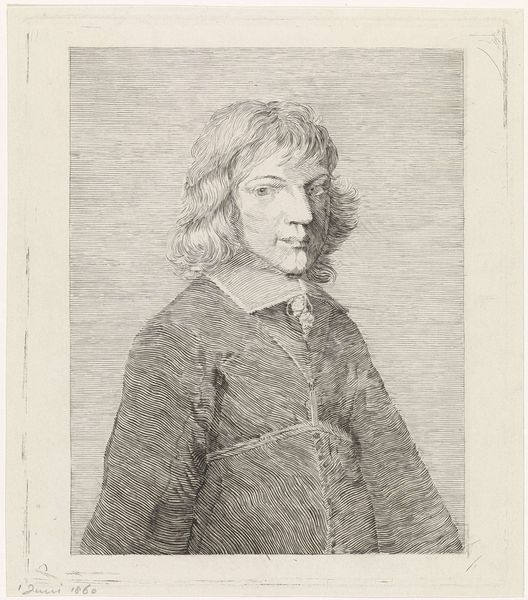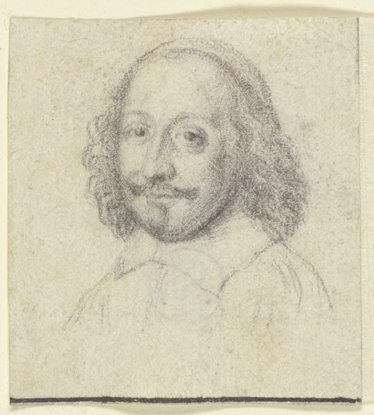 This is a drawing of Quintijn Simons by Anthony van Dyck, made using black chalk on paper. The choice of chalk as a medium brings an immediacy and intimacy to the portrait. You can almost see van Dyck’s hand at work, building up the image with quick, energetic strokes. Chalk is direct. It doesn't lend itself to fussy detail. Instead, the artist relies on subtle gradations of tone, and the contrast of light and shadow, to bring Simons to life. Van Dyck was known for his facility, and this drawing showcases his skill in capturing a likeness with just a few well-placed lines. The rough paper adds texture, catching the chalk in its fibers and creating a sense of depth. It's a reminder that even the simplest of materials, when wielded by a master, can produce extraordinary results. The focus here isn't on high finish or perfect illusion, but rather on the essence of the sitter. It encourages us to look beyond the surface and consider the creative process itself as central to the image’s meaning.