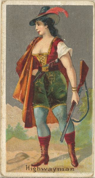 Editor: Here we have "Calais, France, from the Surf Beauties series," a lithograph print from 1889 by the Kinney Brothers Tobacco Company. It depicts a woman in what I assume is swimwear, wading in water. The colors are quite vibrant. I'm curious about the context in which this print was made and what might have been the intent of the artist? Curator: The print, produced by a tobacco company, inherently links art to commerce and consumerism. The lithographic process itself – a relatively cheap and reproducible technique – facilitated the mass production of these images. These "Surf Beauties" were, in essence, commodities, traded alongside tobacco. What does that suggest about the representation of women and leisure in this period? Editor: That's interesting! I hadn't thought of it that way. So the image itself becomes a tool for selling a completely unrelated product? I guess I was focusing too much on the aesthetic value. Curator: Exactly. Consider the "Orientalist" elements within this image – while labeled as "Calais, France," are there details in the figure's clothing or pose that don't quite align with that reality? How might these choices, even subtle ones, reflect and reinforce colonial attitudes toward the exotic "Other", even in a mundane advertisement? It's also worth exploring labor involved, both the factory workers making the tobacco, the printing and even the distribution, compared with images of leisure portrayed. What boundaries, real or imagined, are implied in the making of this artwork? Editor: So, instead of seeing just a pretty picture, we're really seeing a reflection of industrial practices, cultural biases, and even colonial undertones packaged and sold. It’s made me rethink my initial assumptions. Curator: Precisely. By interrogating the materials, production methods, and intended audience, we gain a much richer understanding of the print and its place within a specific moment in history. Hopefully, it shows the ways that consumer goods and the industrial age shape not just daily lives, but artistic expression, too. Editor: Absolutely. I see the layers of meaning now. Thank you for offering this lens.