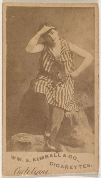 This card, “Mlle. Eason, from the Actresses series,” was made by the cigarette company Wm. S. Kimball & Co. This small card, made from paper and printed with an image of Mlle. Eason, an actress, speaks volumes about industrial production and popular culture at the time. Unlike traditional art forms, mass-produced cards like this one were printed in vast quantities, often included in cigarette packs as promotional items. The image itself would have been captured using photographic processes and reproduced via advanced printing technologies. The seemingly simple photograph embodies a shift towards a more democratic and accessible form of visual culture. By understanding the methods of production behind this image, we can challenge traditional distinctions between fine art and everyday commercial objects.