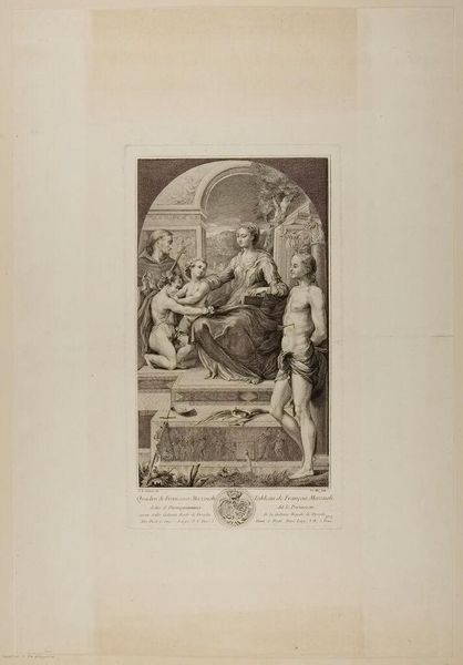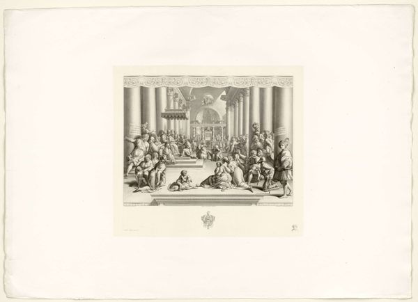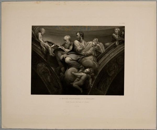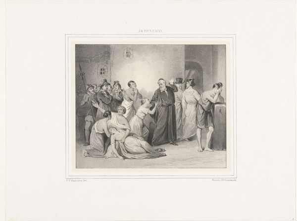 Editor: Here we have Friedrich August Ludy’s print, "Mary Magdalene Washing Christ's Feet". The texture created through the printmaking process is really interesting. What stands out to you about the means of its production? Curator: The printmaking process itself speaks to a specific mode of production, where images could be replicated and disseminated widely. Consider the labor involved and how the print challenges traditional, singular artistic creation. Editor: So, the value isn't just in the image, but in its accessibility through the printing process? Curator: Precisely. The print's material existence allows for broader consumption and interaction, shifting our focus from the artist's hand to the social impact of reproduction. Did the cost of this print matter? How many were made? Editor: I hadn't thought about it that way before! It’s like the message is multiplied through its materiality. Curator: Exactly! The material itself is part of the message.