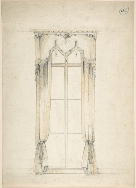 Editor: Here we have Sir William Chambers' "Design for a Pier-glass with Arched Head and Palmette Terminations," dating from between 1743 and 1796. It's rendered in pencil, pen, and print. The symmetry and delicate detailing give it a distinctly formal feel. What sort of meanings do you see embedded in this design? Curator: It’s fascinating how Chambers employs classical motifs in this pier-glass design, isn’t it? Think about the palmette at the apex, and the swag motifs. They evoke ancient Greece and Rome, calling to mind ideals of order and reason. How do you think this visual vocabulary speaks to the cultural aspirations of the Neoclassical period? Editor: I see what you mean, it feels like the design wants to revive a golden age. So is the mirror itself also symbolic? Curator: Absolutely. The mirror doesn’t just reflect an image; it reflects ideals, values, and the status of the person gazing into it. In a Neoclassical setting, it suggests self-reflection, the pursuit of knowledge, and adherence to classical virtues. It becomes a powerful tool for self-fashioning and presenting oneself in a cultivated, enlightened manner. What other details strike you as particularly meaningful? Editor: The garland of leaves makes me think of celebration, or even victory. But how can a mirror design signify victory? Curator: The laurel garland around the arch speaks to a cultivated victory, a triumph of the mind and good taste through the acquisition of knowledge and virtue. A visual link that underscores one's position within a refined, classical milieu. How interesting! Editor: It's amazing how something that seems purely decorative is really loaded with cultural meaning. I definitely see it differently now. Curator: Indeed, a beautiful artifact that prompts us to contemplate the values of a society through the things they create.