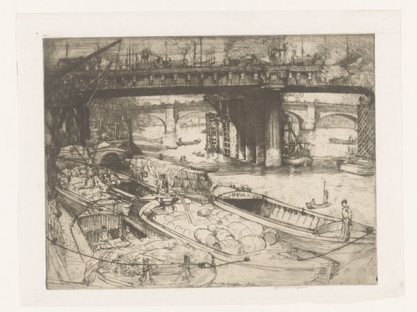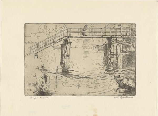 James Abbott McNeill Whistler made this etching, titled ‘Brug in Amsterdam,’ during a period of self-imposed exile in Europe. Whistler, an American expatriate, found himself embroiled in the late 19th century’s aesthetic debates, particularly those surrounding “art for art’s sake.” Eschewing social commentary or moralizing narratives, Whistler turned to landscapes and cityscapes, capturing fleeting moments of beauty and atmosphere. Amsterdam, with its intricate network of canals and bridges, provided the perfect setting for his explorations of light and shadow. Look at how Whistler uses delicate lines and tonal variations to evoke the shimmering reflections on the water's surface. The figures are merely suggested, their presence secondary to the overall harmony of the composition. Whistler sought to create a visual poetry, an art that appealed to the senses and transcended the boundaries of language and culture. In doing so, he invites us to pause, to contemplate the quiet beauty of the everyday, and to find solace in the ephemeral moments that make up our lives.