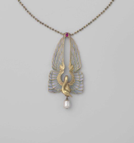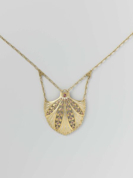 This pendant necklace was crafted by Firma van den Eersten & Hofmeijer. Consider the significance of jewelry during periods of social change. In times when personal expression is either suppressed or celebrated, accessories like this become powerful symbols of identity. The warm amber tone of the pendant invokes the earth, suggesting a connection to nature and perhaps to the body itself. Imagine this piece adorning someone during a time of cultural transformation. It could be seen as an assertion of individuality, a subtle act of defiance against uniformity, or a celebration of personal history. The geometric designs, while modern, carry echoes of ancient motifs, linking the wearer to a lineage of artistry and meaning. As you observe the necklace, consider how personal adornments reflect our innermost selves and our place in the world.