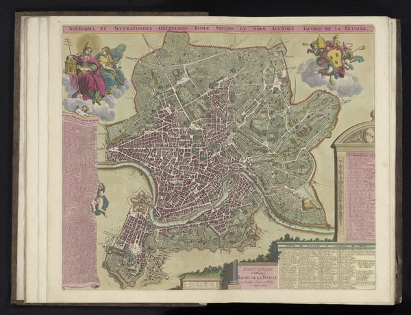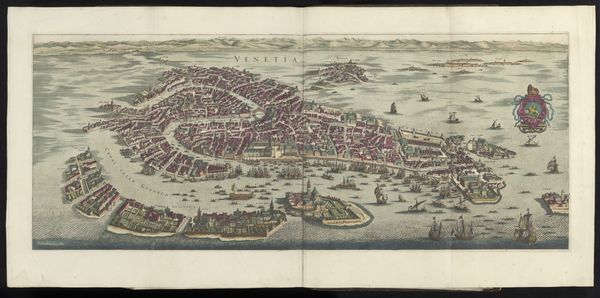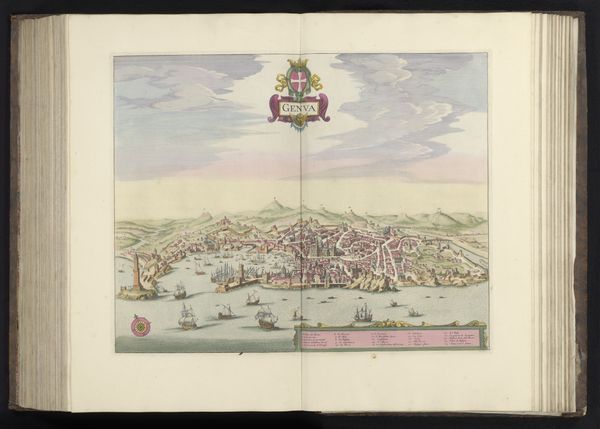 This is an anonymous rendering of Lisbon, presented as a meticulously detailed city view. The composition is structured around a high vantage point, offering a comprehensive look at Lisbon's urban layout and geographical setting. The artist uses a grid-like structure to represent the city’s buildings and streets, contrasted by organic forms of the surrounding hills and bodies of water. Colors are applied selectively, with muted tones defining the built environment and brighter hues highlighting key landmarks. This juxtaposition creates a visual hierarchy, drawing the eye to areas of significance. The work reveals a formal approach to urban representation, where the city is viewed as a structured entity, open to rational understanding and control. Yet, this representation also reflects a deeper engagement with the semiotics of space, where urban elements function as signs within a larger cultural and political discourse. Notice how the structural clarity of the map invites us to decode the layers of meaning embedded within the urban landscape, reflecting the evolving nature of our understanding of space, power, and representation.