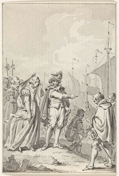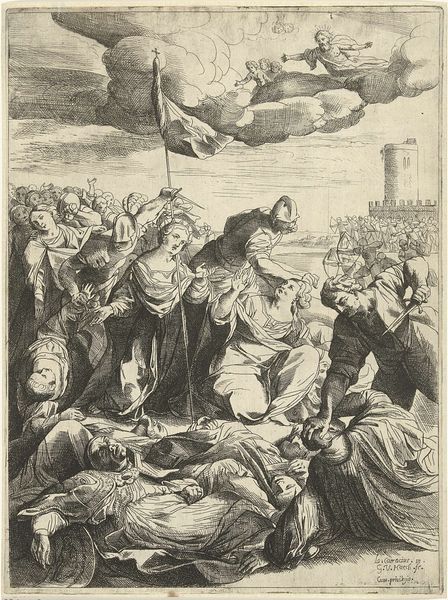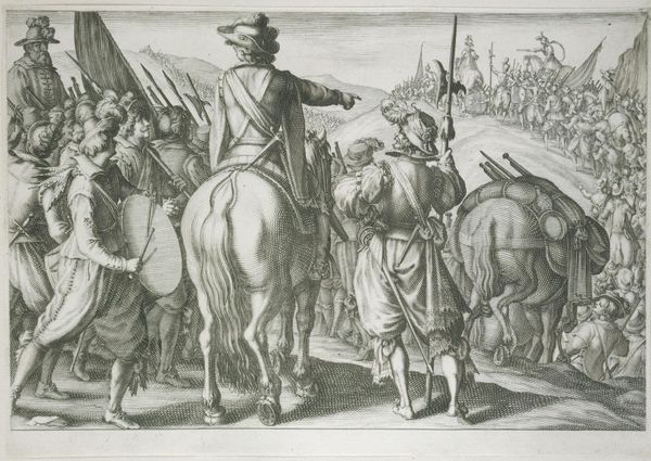 Editor: So this is "The Triumph of Marius" by Giovanni Battista Tiepolo, painted in 1729, oil on canvas. It feels very grand, almost theatrical, with everyone pressing forward in this parade. What do you see in this piece that I might be missing? Curator: It feels like stepping into a dream, doesn't it? The light is absolutely shimmering. To me, it's all about the fleeting moment of victory, transformed into something immortal. See how Tiepolo uses that almost dizzying perspective? It makes us feel right there, swept up in the fervor of the crowd. And those colours! They feel plucked from the sunset. I imagine Tiepolo standing before this canvas, eyes wide, feeling everything so deeply. What do you make of the figures themselves, their expressions? Editor: I guess they seem… idealized? Very Roman, very strong. Do you think it accurately portrays the actual event, or is it more of a fantasy? Curator: Ah, the delicious question of truth versus interpretation! I’d argue that Tiepolo isn't interested in a documentary-style retelling. He’s conjuring the essence of triumph, the feeling of it. Consider the Baroque period: theatricality reigned supreme! But it's always fun to dig deeper, question, push back against what feels immediately obvious. Have you ever felt like the artist, lost in the joy and pain of it all? Editor: It definitely makes me think differently about historical paintings, seeing it as less about accurate portrayal and more about capturing a feeling. Thanks for this perspective! Curator: And thank you for your fresh eyes! It's through these dialogues that we truly breathe life into these paintings.
