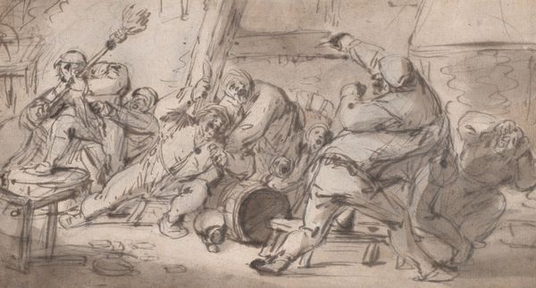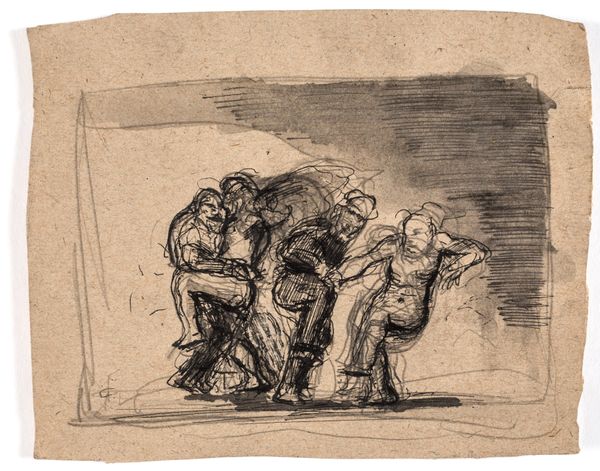 Adam Elsheimer made this drawing, The Denial of Peter, with pen and brown ink on paper. The artist’s hand is immediately evident in the quality of line and tonality that permeates the image. This is not merely a question of surface appearance. The density of the ink, and the way that it bleeds into the fibers of the paper, determine the very presence of the figures. You can see how the pen strokes are used to model the forms, to give them a sense of weight and volume. The density of the composition is remarkable, and it invites close looking. The use of ink on paper as a means of production is significant in itself. It speaks to a tradition of draftsmanship that predates mass production, reflecting the cultural significance of the handmade. The immediacy and simplicity of drawing tools allow for a direct connection between the artist's vision and its material realization. Paying attention to materials, making, and context helps us appreciate the full meaning of the artwork, challenging traditional distinctions between fine art and craft.