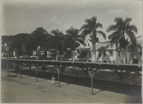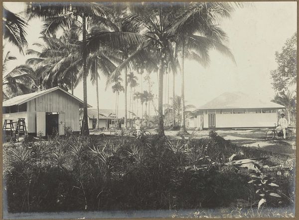 Carl J. Kleingrothe captured this exterior view of a fermentation shed in Padang Tjumin, Sumatra, with a camera, immortalizing not just a building, but a cultural crossroads. Observe the palm trees. These are more than tropical flora; they are silent witnesses, emblems of fecundity and colonial enterprise. Palm trees evoke a sense of exoticism, their presence signals the distant lands that have been shaped by global economic forces. Consider how these same trees appear in ancient Egyptian art, symbols of life and nourishment, then transported across oceans and ideologies to become emblems of leisure. It's a curious transformation, isn't it? A symbol rooted in survival now adorns postcards of paradise. In the collective psyche, the palm tree is a marker of 'elsewhere,' a dreamscape where reality blurs. It's the echo of ancient groves, reimagined in the context of empire, forever swaying between its sacred past and its commodified present.