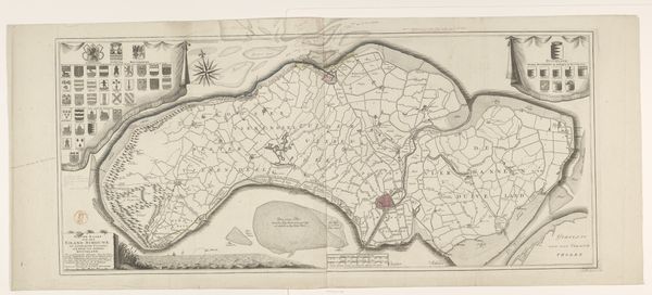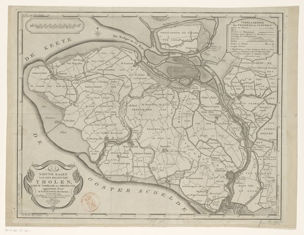 This undated map of Schouwen-Duiveland is printed in ink on paper, a relatively inexpensive medium, which allowed for widespread distribution. The work's appearance is deeply influenced by its material. The ink creates sharp, definitive lines, which precisely outline geographical features. These qualities are essential for a map, where accuracy is paramount. The printing process also imbues the artwork with social significance. Maps like these weren’t just about geography. They were tools of power, allowing for territorial claims and resource management. This map, therefore, is not merely a document but a testament to human agency and a symbol of economic and political control. Understanding this requires looking beyond the image itself, and considering the social context and the labor involved in its production. It reminds us that even seemingly straightforward representations of the world are shaped by human intention and power dynamics.