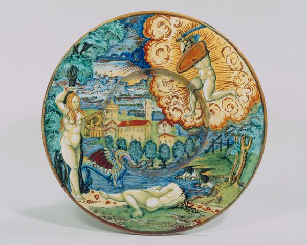 This oval panel presents us with an intimate scene of a woman and her servant on a fenced terrace, made by an anonymous artist. The image creates meaning through visual codes, cultural references, and historical associations. Likely made in China, it reflects a society deeply structured by class and gender roles. The woman's leisurely pose and the presence of a servant playing music indicates her elevated social status. The terrace setting suggests a life of privilege and refined leisure. The Qing Dynasty saw the development of new wealth and, along with it, social tension. Such images often served as a reflection and reinforcement of social norms. Delving into historical texts, social commentaries, and material culture studies could reveal more about the artist's intent and the original audience's reception. Understanding art means understanding its place within a specific social and institutional context.