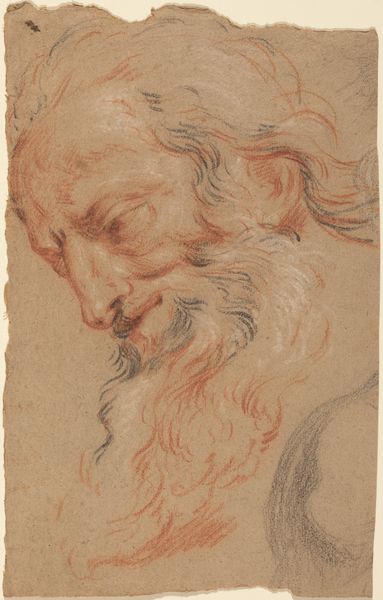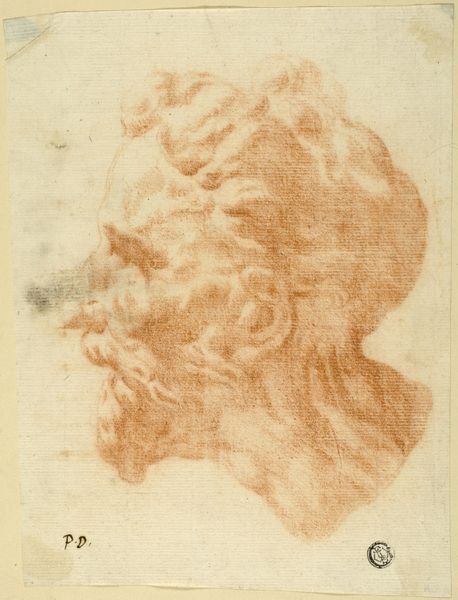 Curator: Before us, we have a drawing entitled "Head of a Man" attributed to Domenico Campagnola. It appears to be executed in charcoal. Editor: My immediate sense is one of introspection. The figure’s eyes are downcast, almost closed. There's a heaviness, a contemplative stillness in his posture and the dense hatching emphasizes this mood. Curator: Domenico Campagnola was a painter and printmaker in Venice during the Renaissance. His works reflected the humanism popular during the Renaissance that emphasized man’s value. The identity of this particular man has been lost, but the detail hints to a prominent male figure of this time period. Editor: Indeed, and in our era, thinking about the canon, it is interesting how it so easily esteems prominent men and whose faces, voices, contributions, get centered and preserved by history and the museums. The closed eyes on this Renaissance face make me question who gets to see, and who is not visible? Whose gazes are valued? Curator: That’s a compelling point, especially when contextualized within Campagnola’s social sphere and the historical weight afforded to certain portraits over others. The politics of representation were certainly at play even then, influencing not just the selection of subjects, but also how they were portrayed. Editor: Absolutely. Considering how much of artistic practice historically reinforced patriarchal structures of the time, pieces like this invite questions. Is the man burdened by a public role he inhabits, for instance? Is there pressure from such expectation? We can almost trace a tension in the soft strokes that outline such serious tone. It becomes interesting to consider which feelings get deemed valuable, even. Curator: It’s fascinating to consider how the simple use of charcoal can express such profound notions. Seeing it displayed allows us a continued space to rethink power dynamics inscribed in artistic canons of the time. Editor: Definitely, seeing the charcoal and simple paper lets you imagine him on display in 15th-16th century Venice. The act of looking and acknowledging whose voices we've centered in art becomes as essential as the artistic gesture of Domenico Campagnola's "Head of a Man."