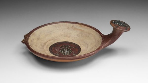 Editor: Right in front of us, we have an 18th to early 19th-century wooden Ladle, attributed to the Haudenosaunee, or Iroquois people. Its simplicity is striking—such a humble object, yet it has such clear craftsmanship! How would you interpret a piece like this? Curator: Ah, a seemingly simple object. But consider—this isn't just a spoon, is it? It's a vessel holding centuries of stories. The very act of carving links the maker to the material world, doesn’t it? The Iroquois see the forest as a source of life, almost a relative, so shaping wood isn’t just craftsmanship; it’s communication, wouldn’t you say? Do you feel it? Editor: I suppose so. I can see the level of care in how they shaped the handle. I notice there are diamond-shaped carvings that make it quite distinct! Curator: Yes, those subtle details speak volumes. Consider who might have used this ladle—imagine the meals shared, the stories told around a fire. How does it make *you* feel? Does it evoke a sense of connection, maybe even longing? Editor: It definitely feels like something you'd want to hold. There is a sense of warmth that the wooden texture gives. Almost intimate? Curator: Precisely. It transforms into more than a utensil—almost a symbol of sustenance, community, and tradition all carved into the wood, don’t you think? Editor: I’d never considered a ladle in that light before! Seeing it as an artifact imbued with a people's cultural values makes so much more sense. Curator: Wonderful, isn't it, how an ordinary object can become a portal to understanding a whole culture?
