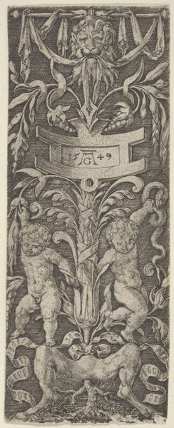 This vertical panel with a vase was created by Jean Lepautre in the 17th century. Notice the symmetrical composition, its rigid verticality, and the elaborate ornamentation characteristic of Baroque design. The panel is structured around a central axis, featuring a vase at the bottom, flanked by seated figures, and crowned with a bust. Observe how Lepautre uses line and texture to create a sense of depth and richness. The intricate patterns of leaves and flowers, contrasted with the smooth surfaces of the vases and figures, highlight the Baroque era’s love for detail and visual complexity. The symmetry and the allegorical figures suggest an idealized vision of order and harmony. This panel functions not just as a decorative element but as a statement of cultural and philosophical values, reflecting the period's fascination with classical forms and its desire to impose structure on the natural world.